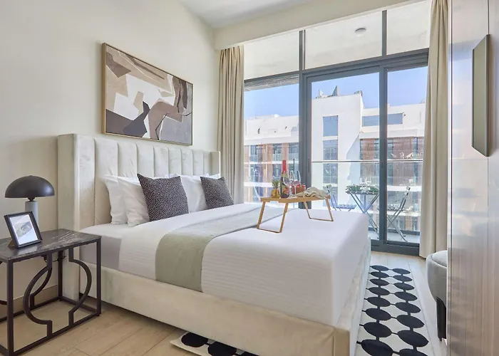 Oferecendo piscina, apartamento Frank Porter - Azizi Riviera 15 está localizado a 6 km de Centro Financeiro Internacional de Dubai. É uma viagem de 15 minutos até Estádio Zabeel a partir de apartamento.